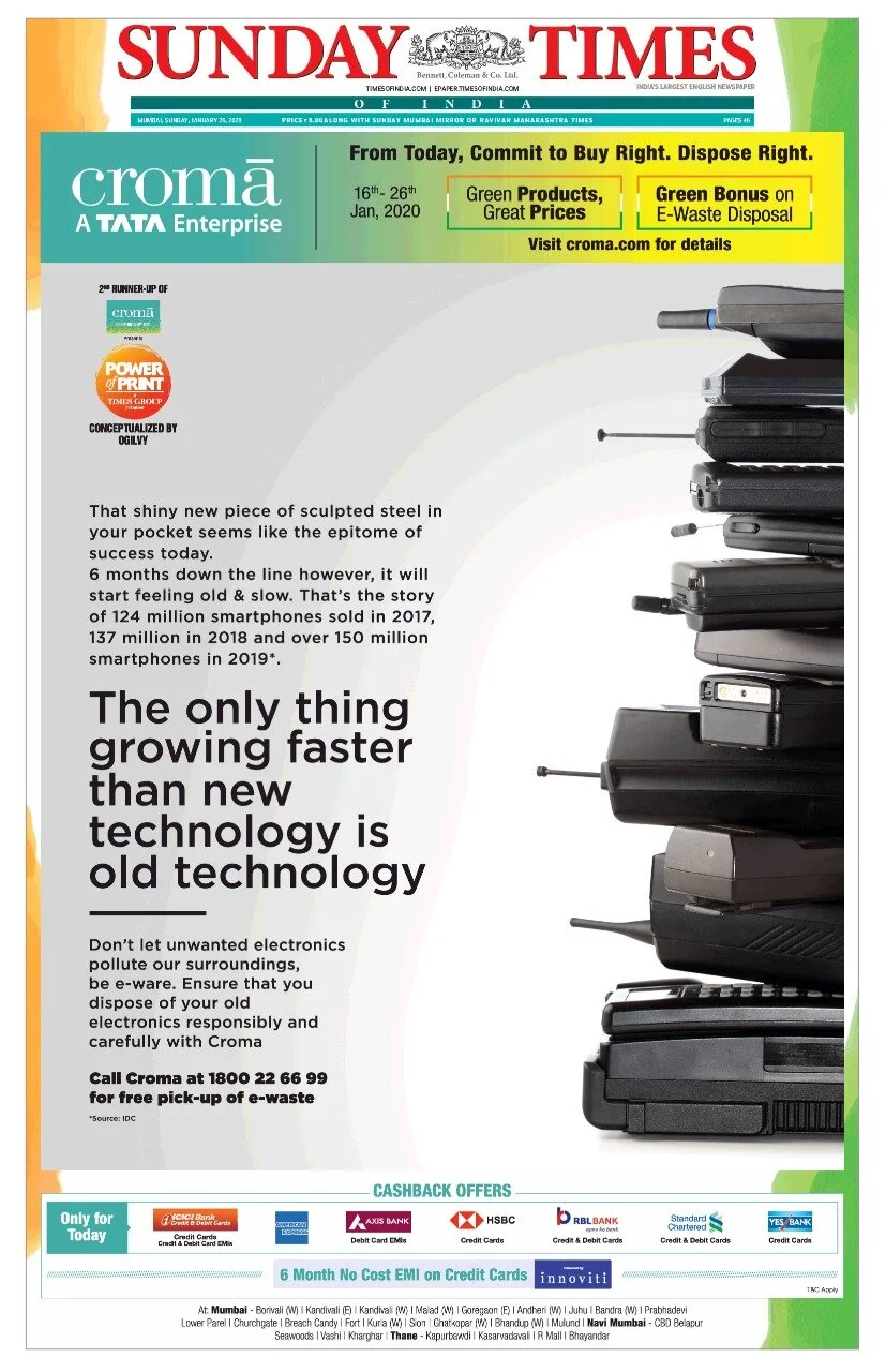 After being awarded runner-up in the Times Power of Print award, my campaign was featured on the front page of every Times Of India edition newspaper across the country.
